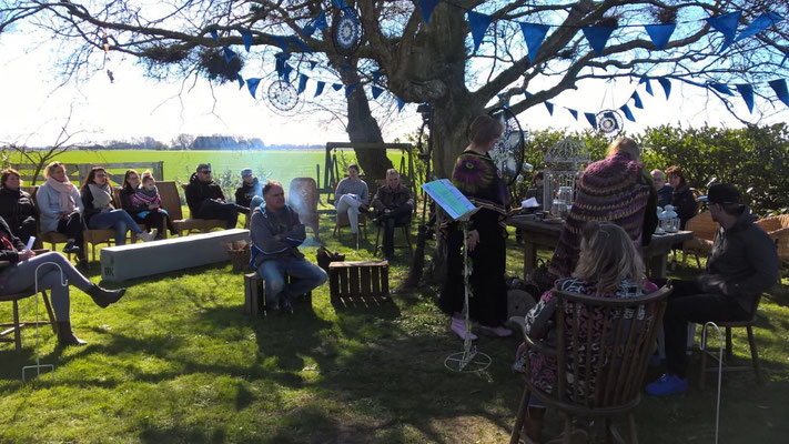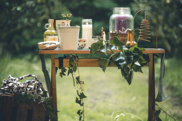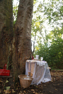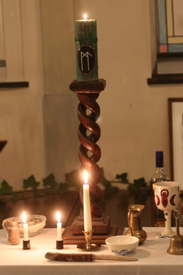 Daarom creëer ik die plaats door een cirkel te trekken en zet een klein altaar neer met de attributen die nodig zijn voor de ceremonie en het ritueel.